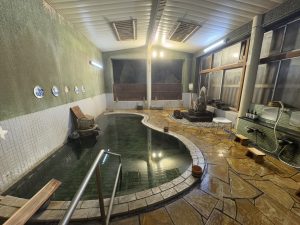 二つのお風呂でそれぞれ使用している源泉は異なりますが、泉質はどちらも単純硫黄泉。ほんのりエメラルドグリーンに色づくお湯は、濃厚で焦がしたような硫化水素の香りです。湯船では少し熱めの適温に設定され、入浴するとツルツルスベスベとした感触が心地よく、湯上りは体の芯まで温まったことを実感できます。
