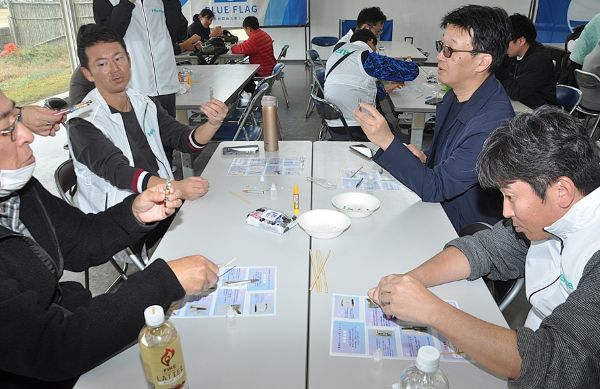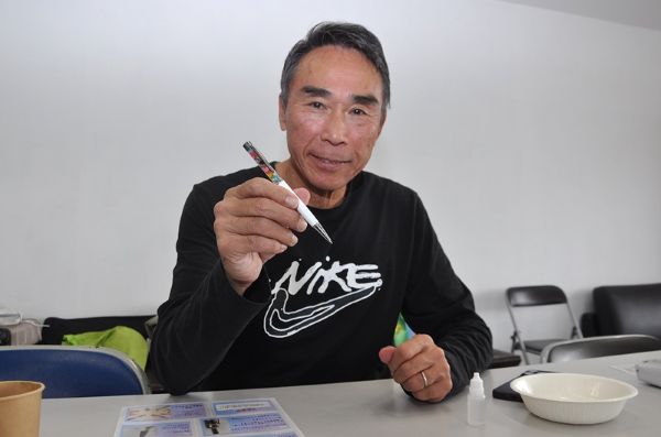 会場を屋内に移した後は、高野さんの講演を聞いたほか、この日拾ったプラスチックごみを「飾り」にしたボールペン作りを楽しんだ。高野さんは、参加者と一緒にボールペン作りに挑戦し、誰よりも一番早く完成させる“アスリート”ぶりを見せていた。