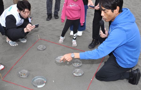 湘南ビジョン研究所の片山清宏理事長は「一見きれいな砂浜ですが、小さなプラスチックごみは短時間の清掃でも見つかります。微細な5ミリ以下のマイクロプラスチックの除去は難しく、海の環境を考える上で大きな課題の一つです。まずは道路や山、川、海などにペットボトルをはじめとしたプラスチックごみを捨てないことが大事です。多くの人に海への関心を持ってもらい、日ごろの生活の中で環境のことを考えていただければ」と話した。