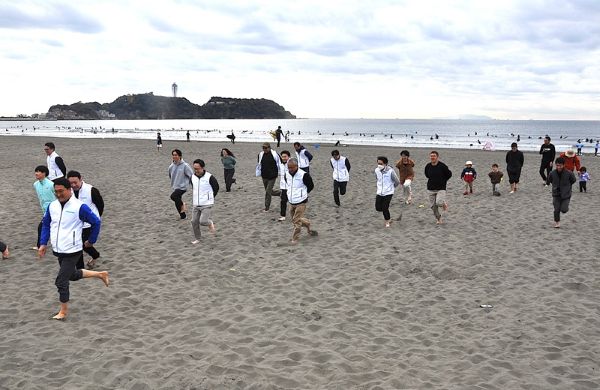 砂浜を清掃したりはだしで砂浜を走ったりして海を体感し、プラスチックごみをはじめとした海の環境問題への理解を深める催しが11月29日、神奈川県藤沢市の鵠沼海岸で開かれ、親子連れなど約40人が参加した。陸上400m走オリンピアンの高野進・東海大教授の指導を受け“走り”の基本を学んだ参加者は、曇り空の下に雄姿を見せる江の島を眺めながら、足裏から伝わる砂の感触が心地よい「砂の上の駆けっこ」などを楽しんだ。