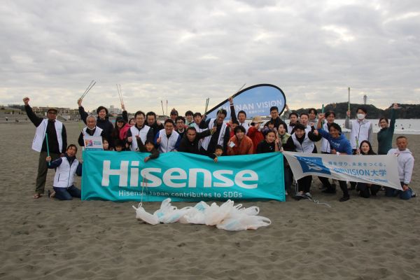 この催しは、海の環境問題に取り組むNPO法人湘南ビジョン研究所 (藤沢市)が主催。同研究所が毎年4~11月に湘南地域で開いている海の環境を考える教育イベント「湘南VISION大学」の一環で、海の環境を守る開催趣旨に賛同する、世界的な家電ブランド・ハイセンス の日本法人「ハイセンスジャパン」(川崎市)が協賛した。参加者の中にはハイセンスジャパンの張喜峰社長や同社員の姿もあった。