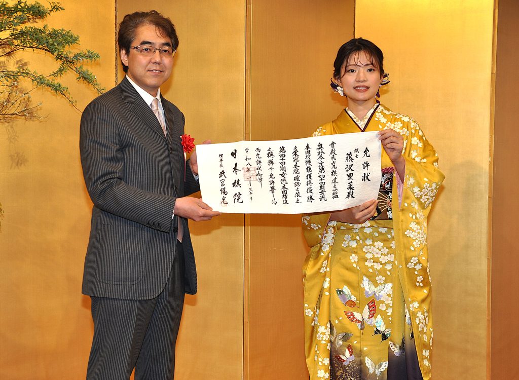藤沢女流本因坊は「囲碁を始めておよそ20年、今が一番囲碁が好き。どんどん好きになるこの囲碁の深い魅力を少しでもお伝えできるよう活躍して囲碁界を盛り上げていきたい」と抱負を述べた。