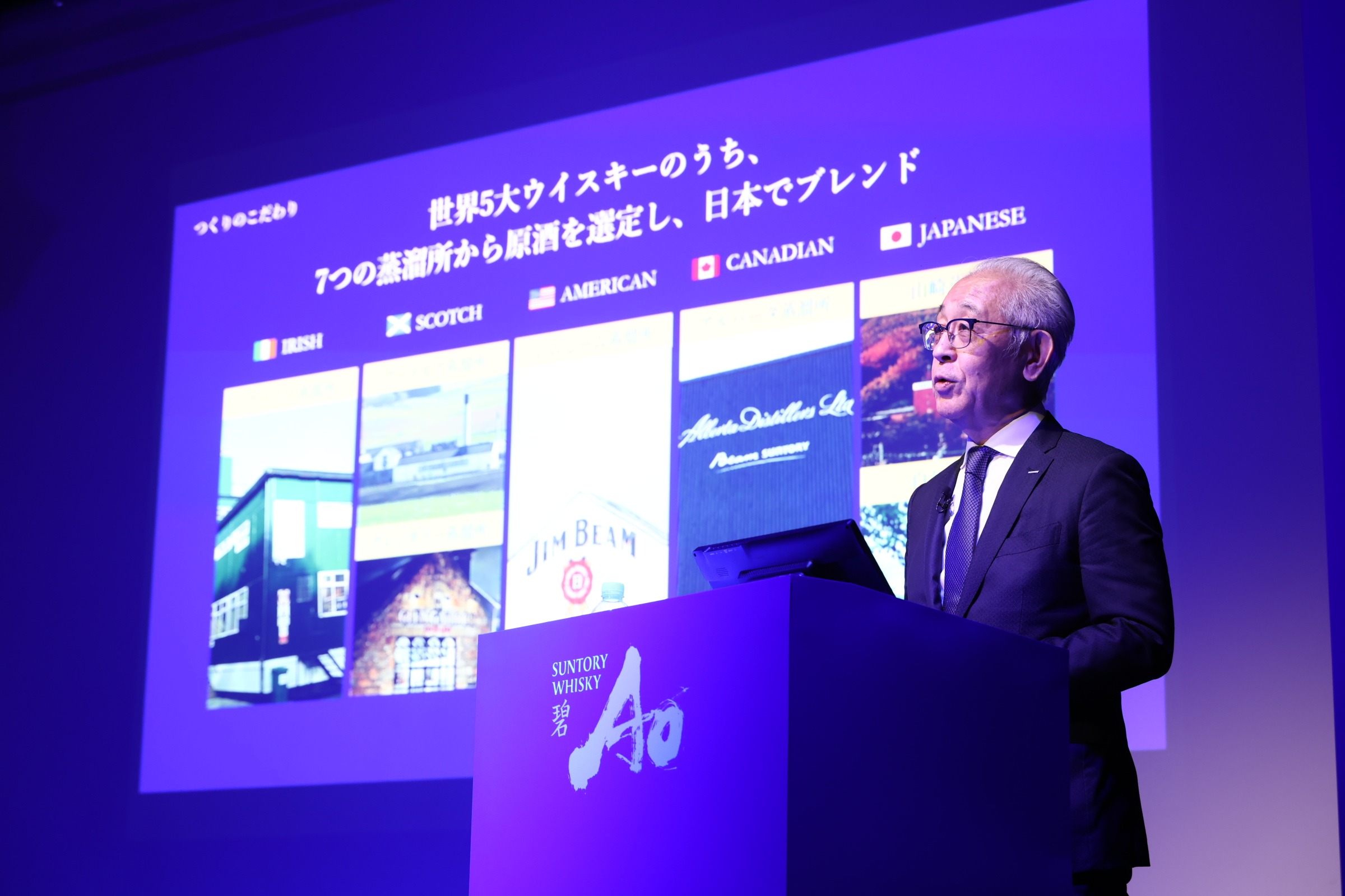 世界5大ウイスキーの原酒をブレンドした夢のようなウイスキー「碧Ao」―。サントリーがアイリッシュ、スコッチ、アメリカン、カナディアン、ジャパニーズという世界的なウイスキー産地にある自社蒸溜所の原酒のみをブレンドして2019年に開発した「碧Ao」が、このほど初めてリニューアルされた。