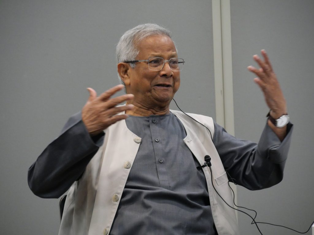 本会議は、ユヌス氏はじめ賢人ら4人のほか、白石隆政策研究大学院名誉教授らが参加。アジアの存在感が世界的に高まる一方で、経済格差や社会不安、地政学的緊張など複合的な課題が深まっていることに加え、SNSやAIなどの急速な技術浸透により、若者の不安が既存の政治・社会システムへの直接的な不満として表れやすくなっている点が、共通の課題として指摘された。